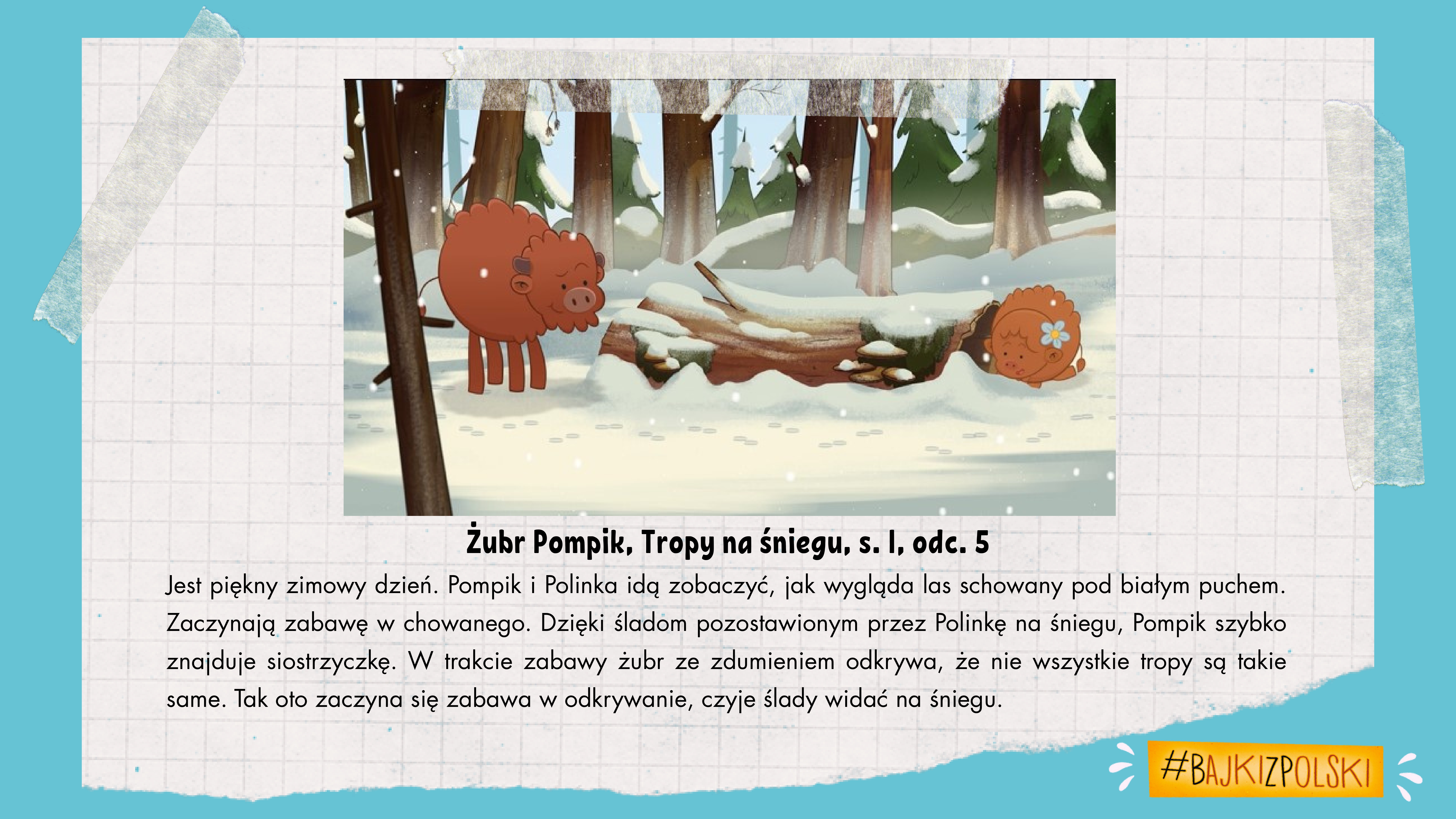 - Żubr Pompik, Tropy na śniegu, s. I, odc. 5 (7’)